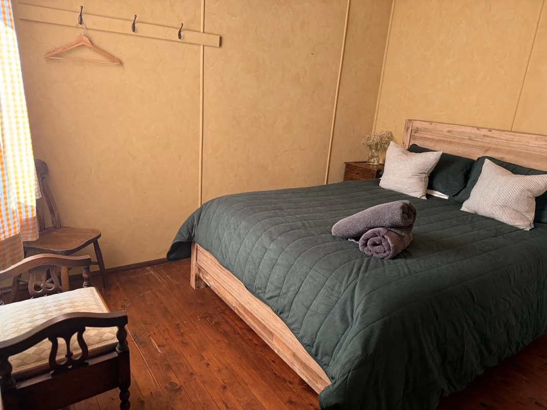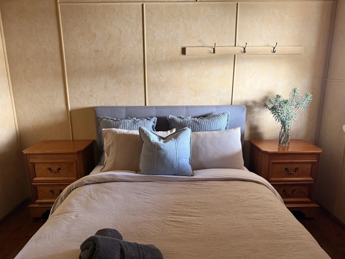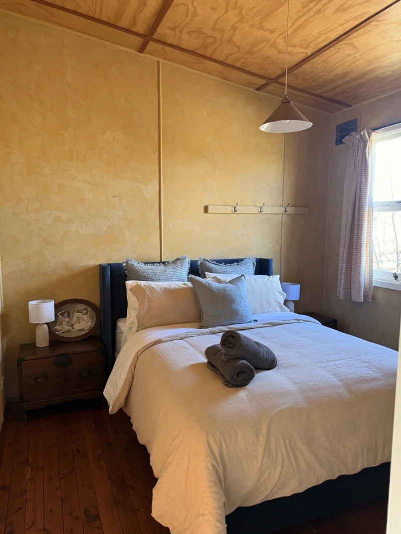 The Shearer’s Quarters at Lawson’s Estate on Macquarie Farm is a rustic yet refined retreat, thoughtfully reimagined from the original quarters where shearers once stayed. With three queen bedrooms, a cosy lounge warmed by an open fire, and a rustic kitchen featuring the original shearers’ workbench as the island, this space is layered with charm and character. Heritage meets homestead living with soft linens, timber finishes, and sweeping views across the property - offering the perfect escape for families or groups seeking a connection to the land and its history.